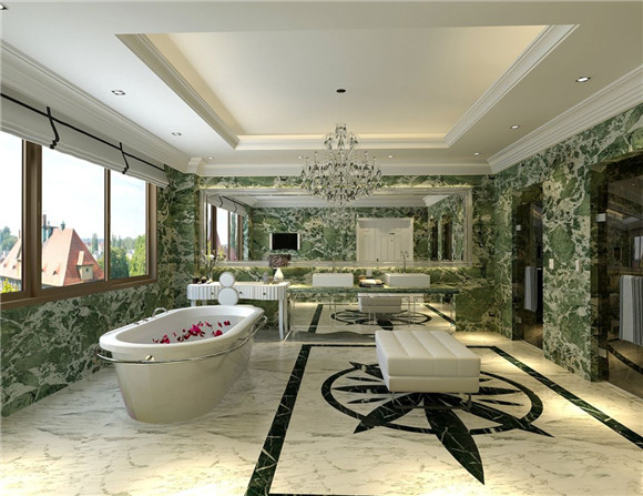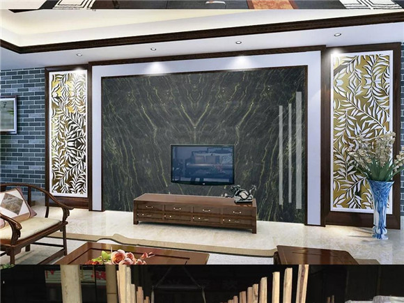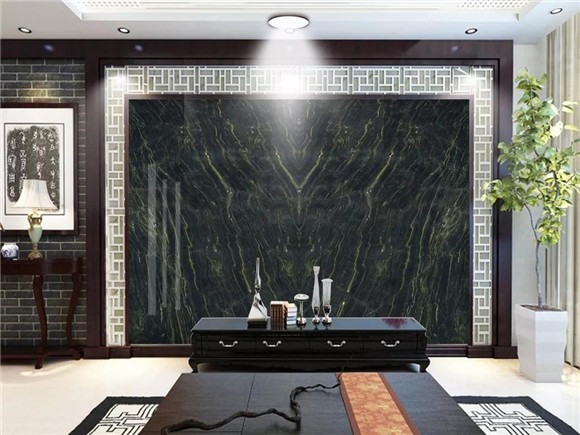 是墨綠情緣大理石家裝效果給人的第一感受。