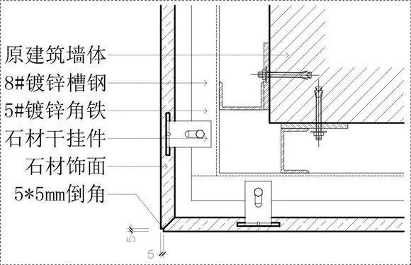 1.鍍鋅槽鋼、鍍鋅角鐵及配件,選用指定墻磚干掛,木龍骨、防火夾板