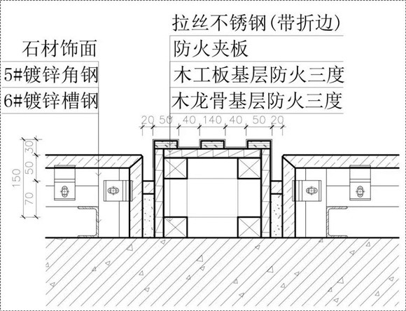 2.不銹鋼基層制作木龍骨、防火板,不銹鋼安裝