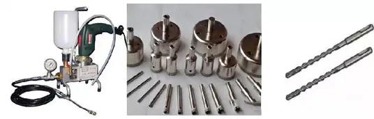 工具:注膠機、手電鉆、玻璃鉆頭、合金鉆頭。