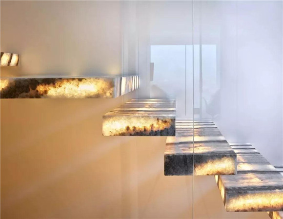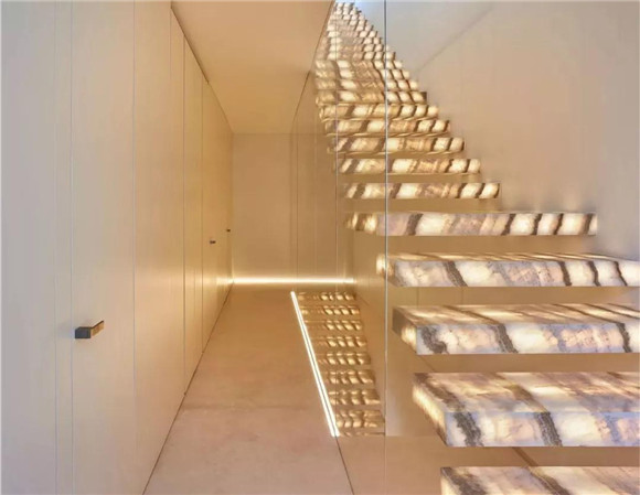 透光石樓梯,開燈的那一刻,簡直比水晶吊燈更耀眼。