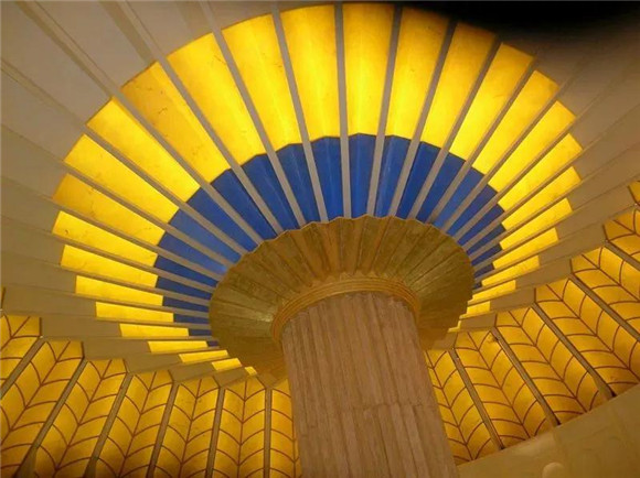 ▲透光石與石膏板吊頂,燈光流轉,十分生動。
