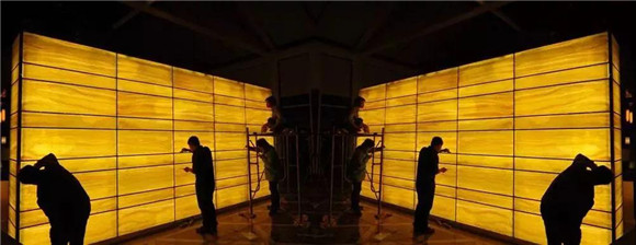 需要注意的是,因為透光石本身具有透光率可控的特點,所以對光源的要求并不高,一般日光燈管或LED燈源都可以,但為了表面光源的均勻,光源需要保持與表面有30cm以上的距離。