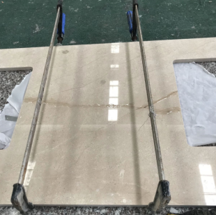 石材http://www.stonebuy.com/粘接時更要注意。將待拼接的板幾件粘成一整塊。粘接時為增加板間的粘接力,可用橡皮錘輕敲板材側面。擠出的膠及時用灰刀鏟除,并觀察膠的顏色是否與板面基本相同。