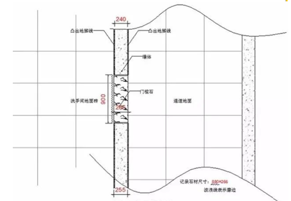 這里強調(diào)的是經(jīng)常出錯的就是沒有和客戶溝通好墻完成面,靠洗手間那一邊是否要加厚,磨邊肯定是要的的。