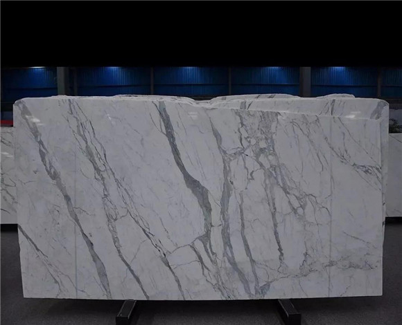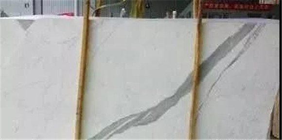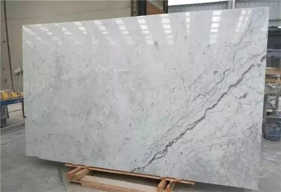 特點:板面色彩潔白,通體雪白、質感純凈底,且紋路分布或灰線縱貫板面,且紋路分布不均,光度極好,能達120度,雪花白由于質地細膩,光澤度高在云石中屬高檔品種。