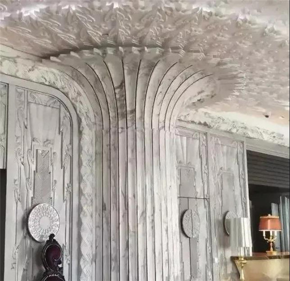 電梯門套如果可以設計為相對獨立的造型,放樣就簡單了,所以我們要認真消化設計圖紙,在不改變設計效果的前提下可適當調整收口方案,讓放樣更容易操作。