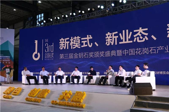 (2019年11月,第三屆金鑰石獎頒獎盛典暨中國http://www.stonebuy.com花崗石產(chǎn)業(yè)發(fā)展高峰論壇上,五蓮縣街頭鎮(zhèn)鎮(zhèn)長鄭召一代表五蓮石材http://www.stonebuy.com/中國http://www.stonebuy.com花崗石直采平臺董事長蔡棟梁及其他花崗石產(chǎn)區(qū)代表一同上臺,共話產(chǎn)業(yè)未來)