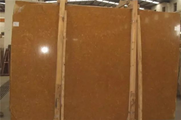 顏色金黃,價格中等,使用中多采用光面,因色澤較重,故不宜大面積使用。使用中應注意的情況:色差大,應注意顏色的過渡自然。質地松軟,易破損,質較軟,易變形。適用范圍:地面、墻面、臺面板等。