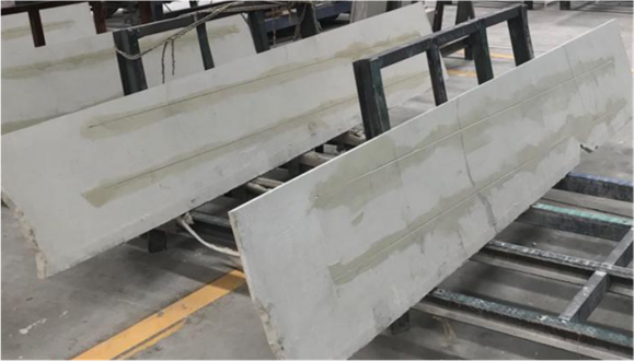 斷裂的大板除用纖維網加固外,應在斷裂處用加固棒加固。斷裂大板的加固僅依靠薄薄的纖維網加固, 確保生產加工和施工不斷裂感覺有點象癡人說夢似的。