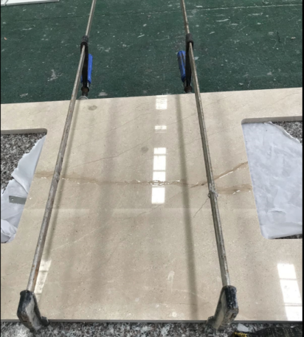 斷裂大理石的修補必須在斷裂處增加加固棒,加固棒可以是鋼筋、不銹鋼條、鋁條或塑料棒。