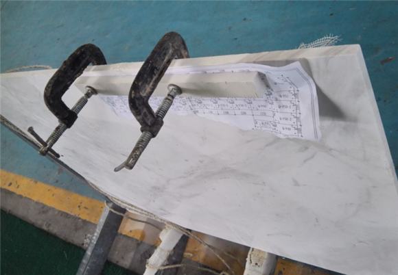 由于線條的質量較重,因此斷裂大理石線條補膠后必須用加固棒加固,且是全長度方向加固,防止坯料從其它地斷裂。