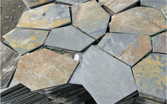 2、板石:由黏土巖、沉積頁巖(有時由石英石)形成的變質巖,礦物顆粒微細,薄而易碎,通常為黑、灰或綠色。
