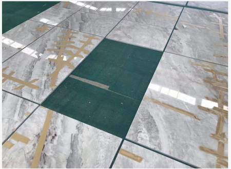 圖10墨綠麻表面存在雞爪紋,需要經過補膠,讓膠充填到雞爪紋中,從而改善墨綠麻表面的質量;