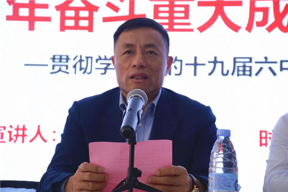 宣講會(huì)上,新?tīng)I(yíng)中學(xué)黨支部書(shū)記、鎮(zhèn)黨史學(xué)習(xí)教育宣講團(tuán)成員潘金榜緊緊圍繞黨的十九屆六中全會(huì)精神,從深刻認(rèn)識(shí)黨十九屆六中全會(huì)召開(kāi)的內(nèi)在邏輯、深入把握黨的十九屆六中全會(huì)精神的核心要義和深度理解