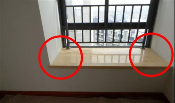 窗臺(tái)石(或下貼線條)與墻不得存在離縫,已便于墻面膩?zhàn)邮沼陉幗恰?/div>