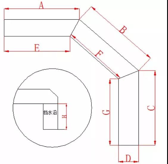窗臺(tái)石面積=(A+E)*D/2+(B+F)*D/2+(C+G)*D/2+(E+F+G)*H