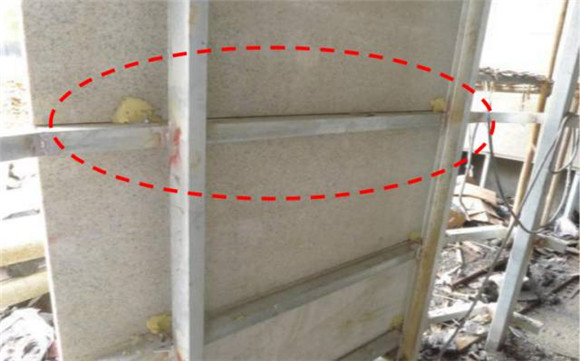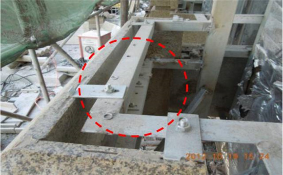現(xiàn)場問題:掛件位置離石板端部距離過小;掛件偏短,采用焊接接長,有安全隱患。