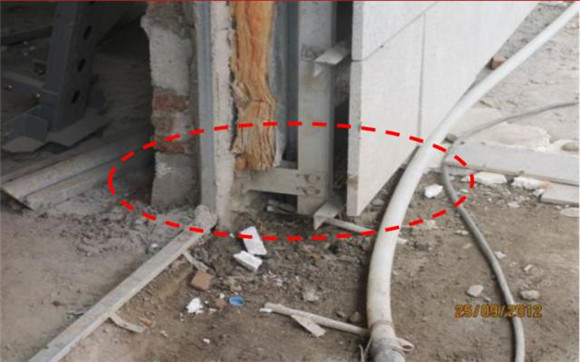整改措施:埋板應(yīng)固定在混凝土結(jié)構(gòu)上,如無法滿足須采用穿墻螺栓固定在磚墻上。