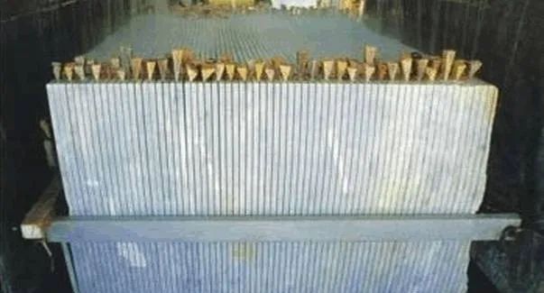 具體方法是用專用噴水器將水均勻噴灑在荒料的表面,然后用定壓機(jī)吹干,在荒料石將干未干之際,可以清楚地檢驗(yàn)出荒料的紋路是否正常、有無色差、雜質(zhì)及其它缺陷,這樣比傳統(tǒng)的目測法更能保證荒料質(zhì)量。