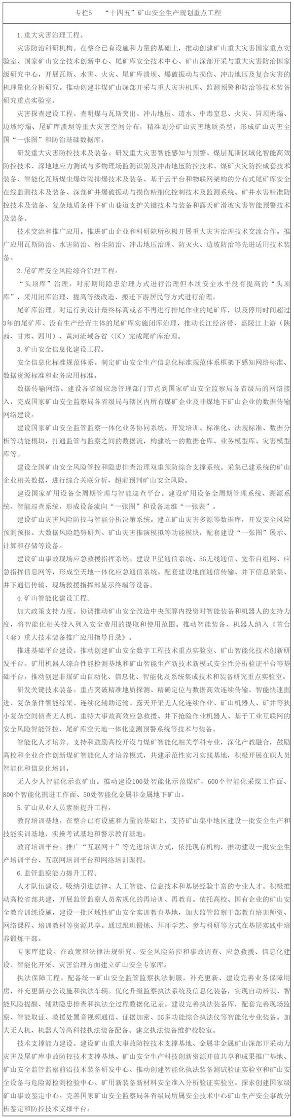 關(guān)于印發(fā)《“十四五”礦山安全生產(chǎn)規(guī)劃》的通知