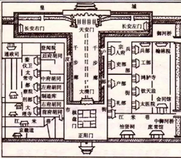 天安門廣場在明清時期,只是紫禁城正門外一個封閉的T形宮廷廣場,東、西、南三面都用圍墻圍起,普通百姓不可入內,只有舉辦重大慶典和向全國發布政令時才可使用,代表著皇權的威嚴。