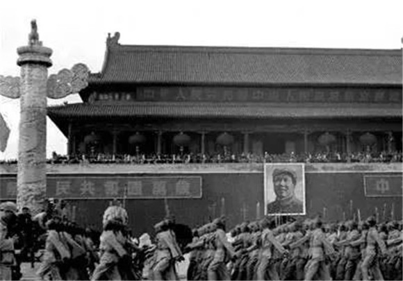 開國大典上,閱兵隊伍走過天安門廣場