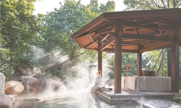 半月山內(nèi)天然溫泉水熱氣蒸騰