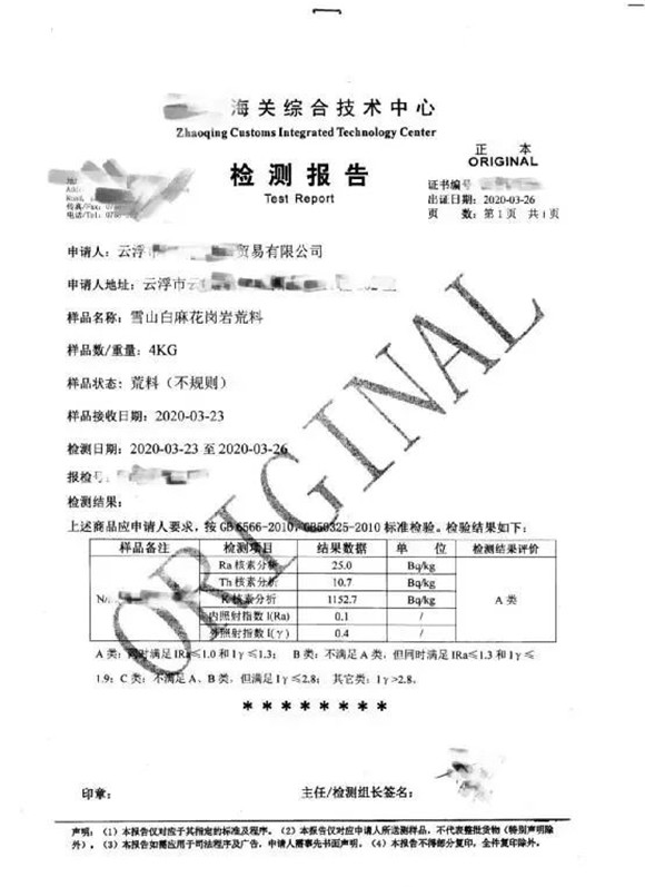 海關依據原國家質檢總局、原外經貿部、海關總署2001年第14號公告、原國家質檢總局2003年第117號公告、《建筑材料放射性核素限量》(GB 6566-2010)及《進出口http://en.stonebuy.com/花崗石現場放射性劑量檢測控制標準》(SN/T 1327-2015)對進口花崗巖的放射性進行檢驗監管,確保進入國內市場http://www.stonebuy.com/enterprise/FuJian/QuanZhouShi.html的進口花崗巖符合安全要求。
