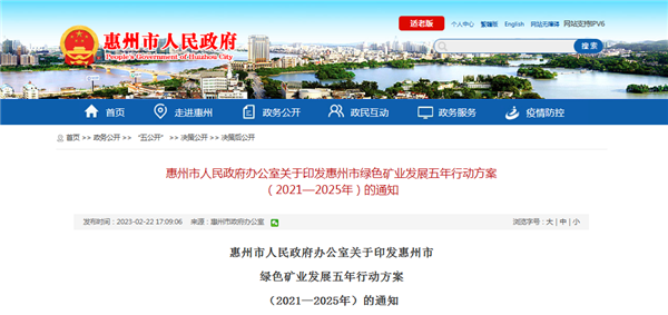惠州市2021-2025年綠色礦業發展五年行動計劃