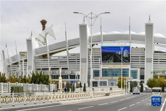 這是11月26日在土庫曼斯坦首都阿什哈巴德拍攝的奧林匹克體育場(chǎng)。