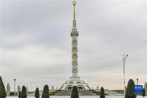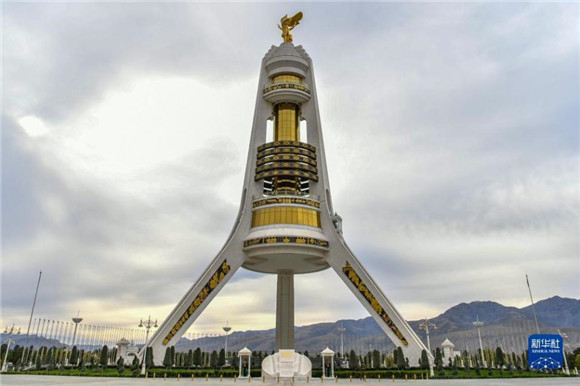 這是11月26日在土庫曼斯坦首都阿什哈巴德拍攝的憲法柱。