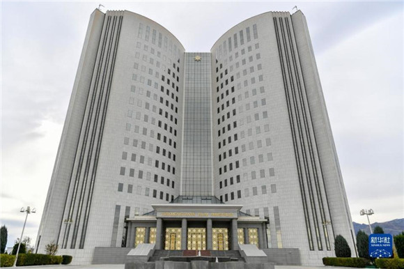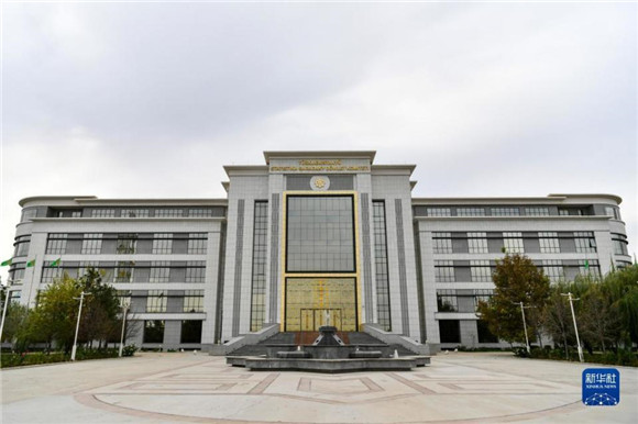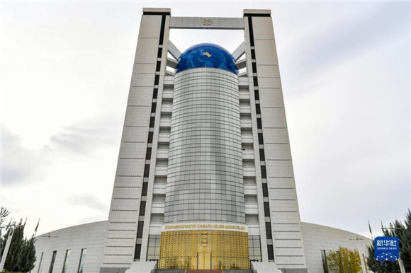 這是11月26日在土庫曼斯坦首都阿什哈巴德拍攝的國家統(tǒng)計(jì)委員會(huì)大樓。