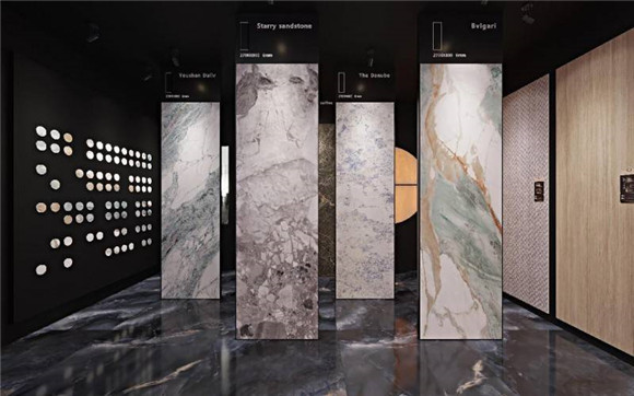 其中,數碼模具面巖板可實現復雜的圖案和立體效果,真實反應自然世界相應材質的肌理感和光澤感。領標通過更科學的處理方法和工藝手段,生產出具有更多元化的天然質感和原始感的巖板表面效果,以滿足設計的創新以及符合不同場景和風格的裝飾要求。