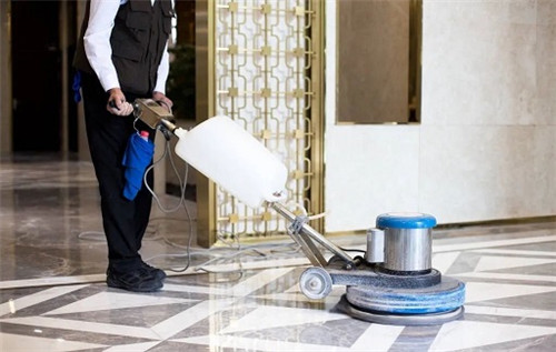方法二:用單盤(pán)機(jī)+干凈干燥的百潔墊,把表面物質(zhì)蹭干凈即可。