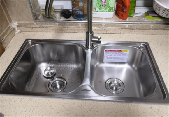 第一種,水槽壓蓋在臺面上,就是我們一般說的臺上盆。這種方式水槽的外邊口是高于臺面的,使得臺面和水槽邊有一個非常明顯的縫隙,這個位置也是藏污納垢的比較突出的位置,且不易于臺面的水流向水槽。
