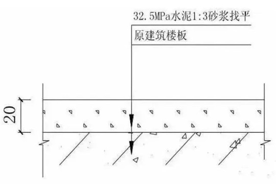 2、根據±0.000m標高扣減飾面構造厚度來確定地面找平標高(設計有要求的按設計要求確定),并在四周墻腳彈線;水泥砂漿找平層的厚度不應小于20mm。