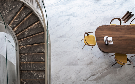 大理石在鋪貼前應鏟除背后網格布,并補刷石材http://www.stonebuy.com/防護劑,晾干后進行鋪貼;若質地較為松脆的石材http://www.stonebuy.com/,則須在工廠對石材http://www.stonebuy.com/背面去網后做背膠或背砂處理,到場后直接鋪貼。