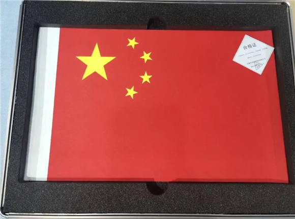 嫦娥六號月面國旗交付正樣件。圖片來源:武漢紡織大學
